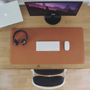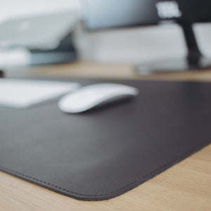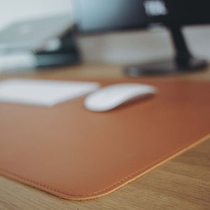 Un tapis de bureau en cuir minimaliste et durable. Parfait pour utiliser votre souris facilement tout en protégeant votre bureau.
